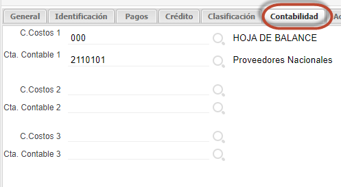 El usuario debe seleccionar la Cuenta Contabilidad que se utiliza para Proveedores Nacionales o del Exterior segun el caso.